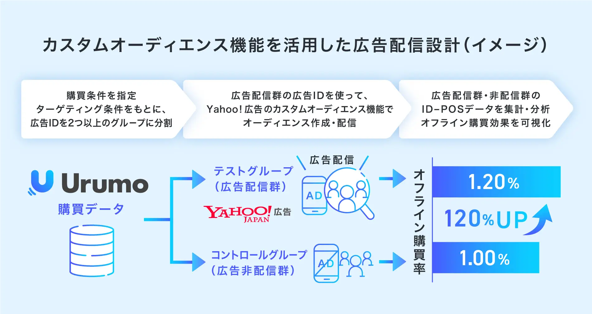 「Urumo Ads」を使ったYahoo!広告の「購買ターゲティング・購買検証」イメージ図