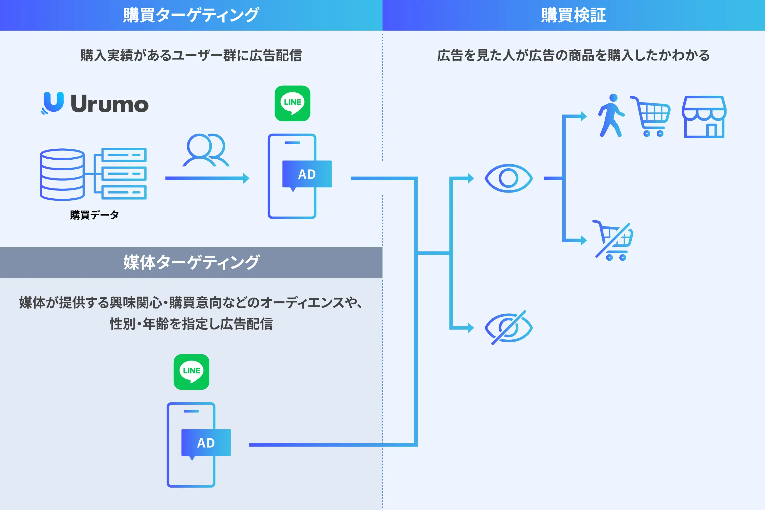 「Urumo Ads」を使った「購買ターゲティング・購買検証」のイメージ