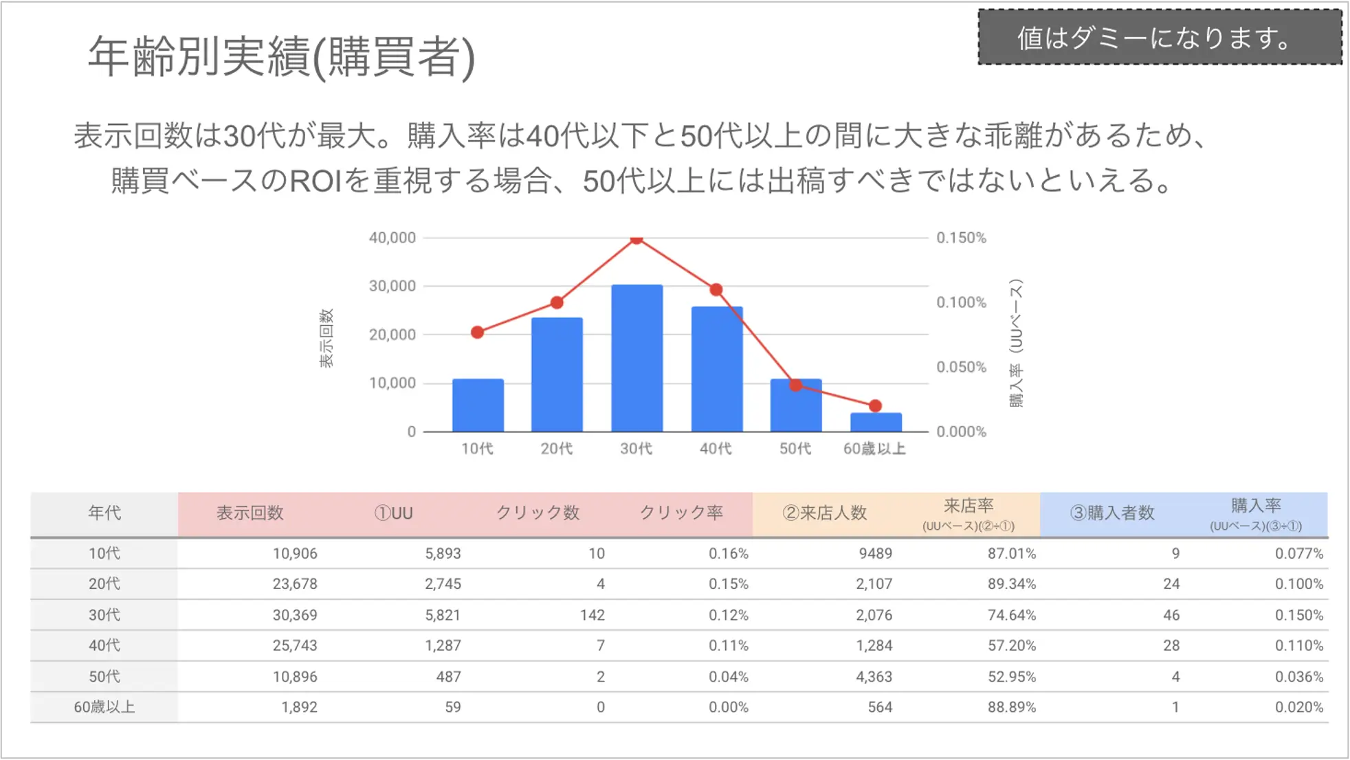 レポーティング例④年齢別実績(購買者)