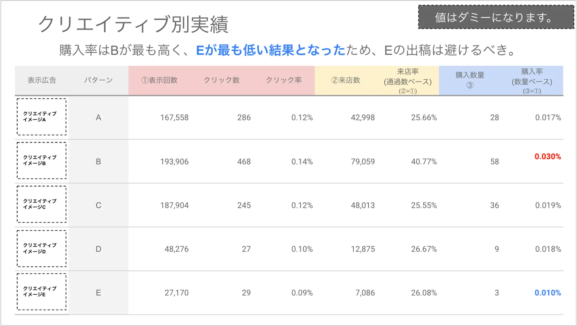 レポーティング例③クリエイティブ別実績
